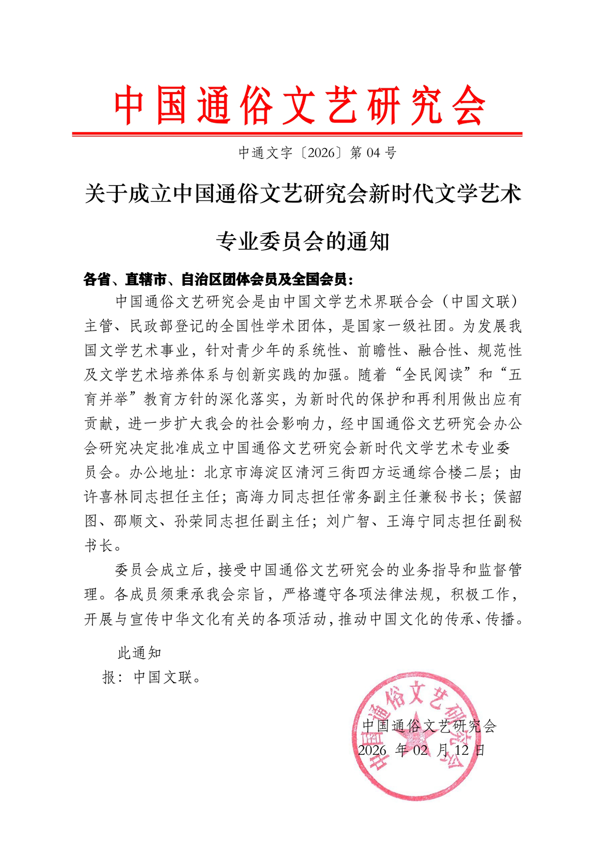 上一篇:关于成立中国通俗文艺研究会新时代文学艺术专业委员会的通知 下一篇:关于成立中国通俗文艺研究会新时代文学艺术专业委员会的通知